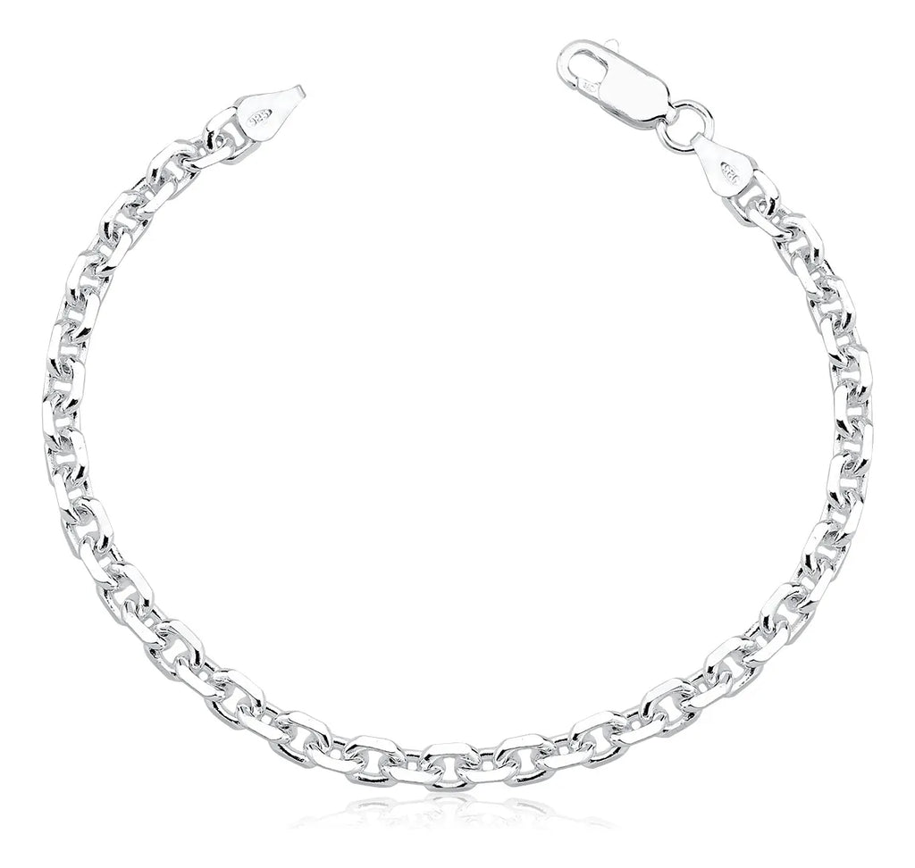 Pulseira Masculina De Prata 925 Elo Cadeado 5mm Comprimento 22 cm Diâmetro 22 cm